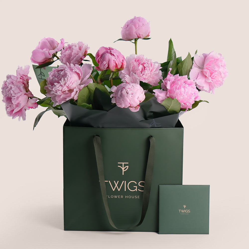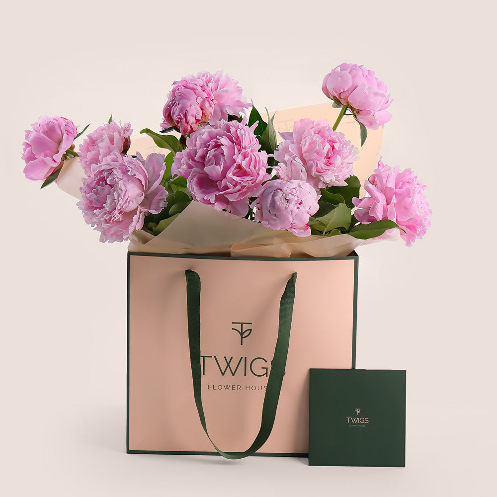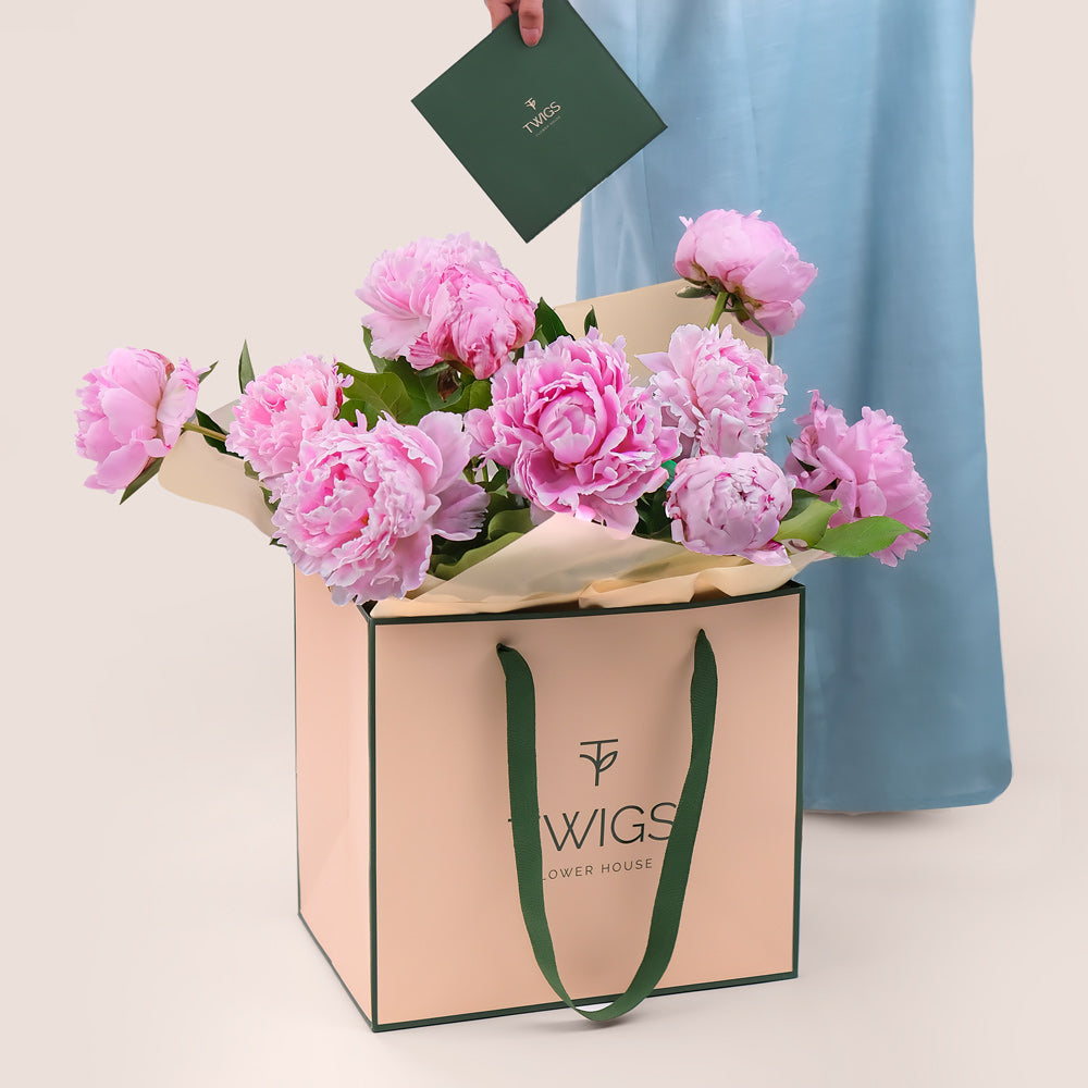 Hand-Tied Peonies | Elegant Bouquet in TWIGS Signature Bag