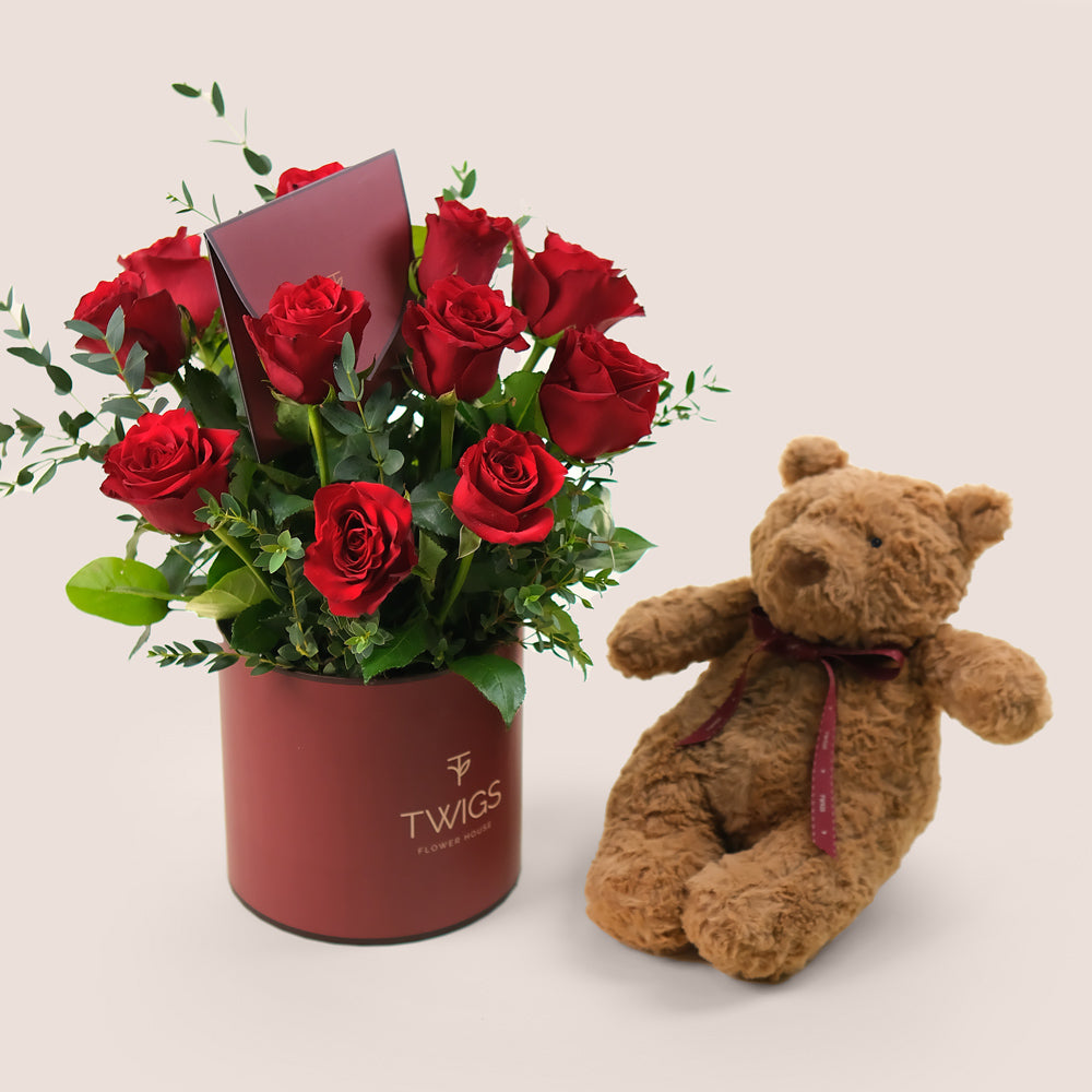 Cuddly Affection – Red Roses & Teddy Bear