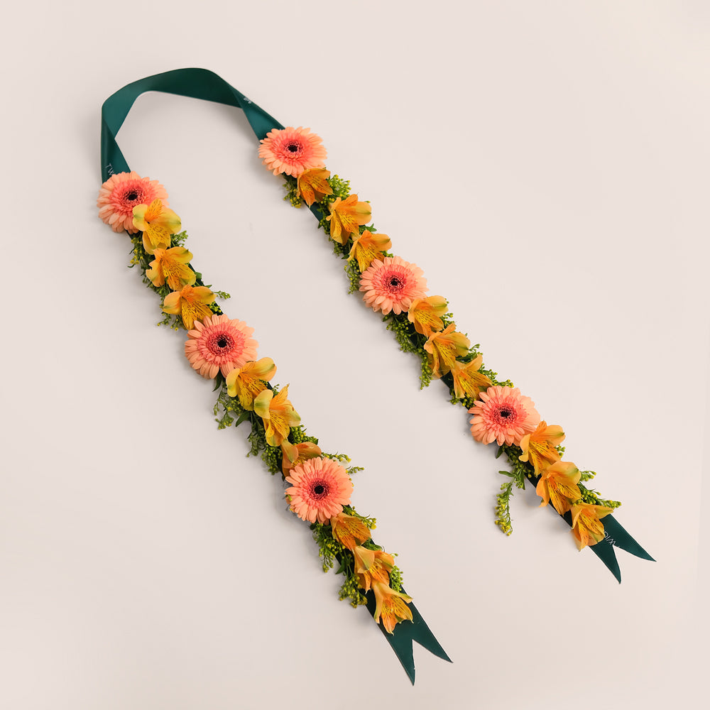 Graduation Flower Lei – Orange Alstroemerias & Peach Gerberas