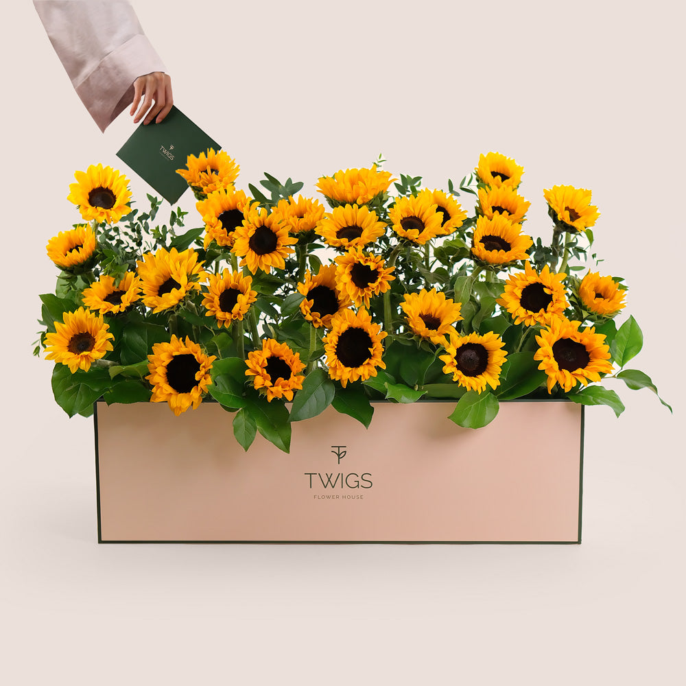 Sunflower Garden Box Arrangement – Same-Day Flower Delivery Dubai
