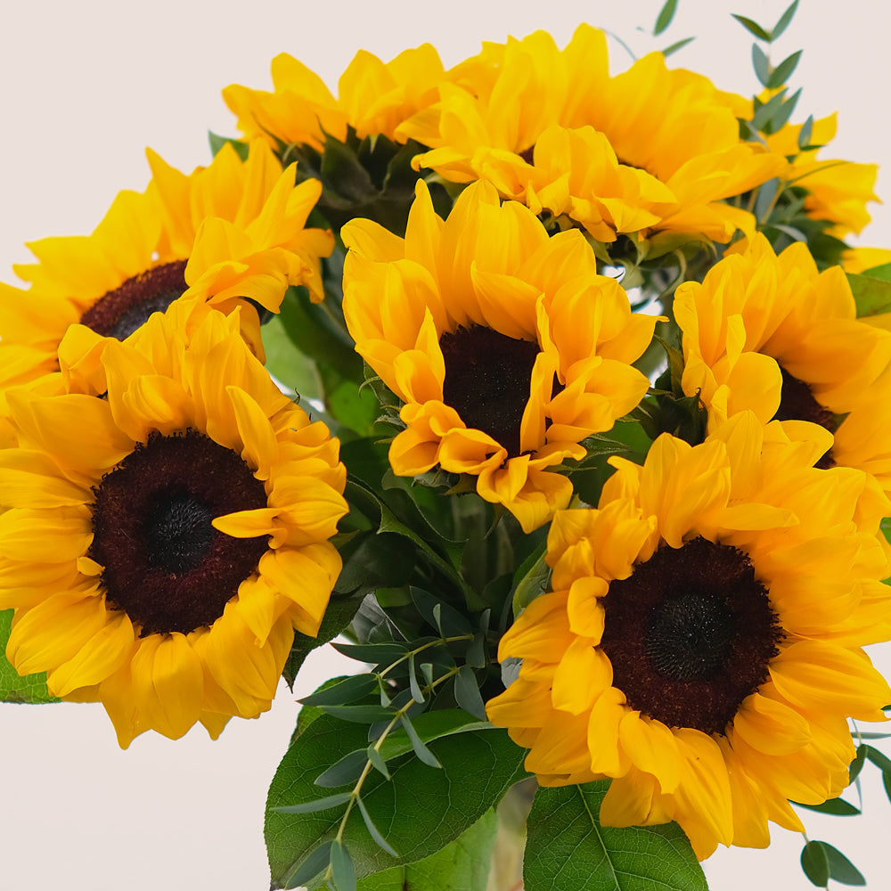 -Fresh-cut Sunflowers arranged in a petite glass vase