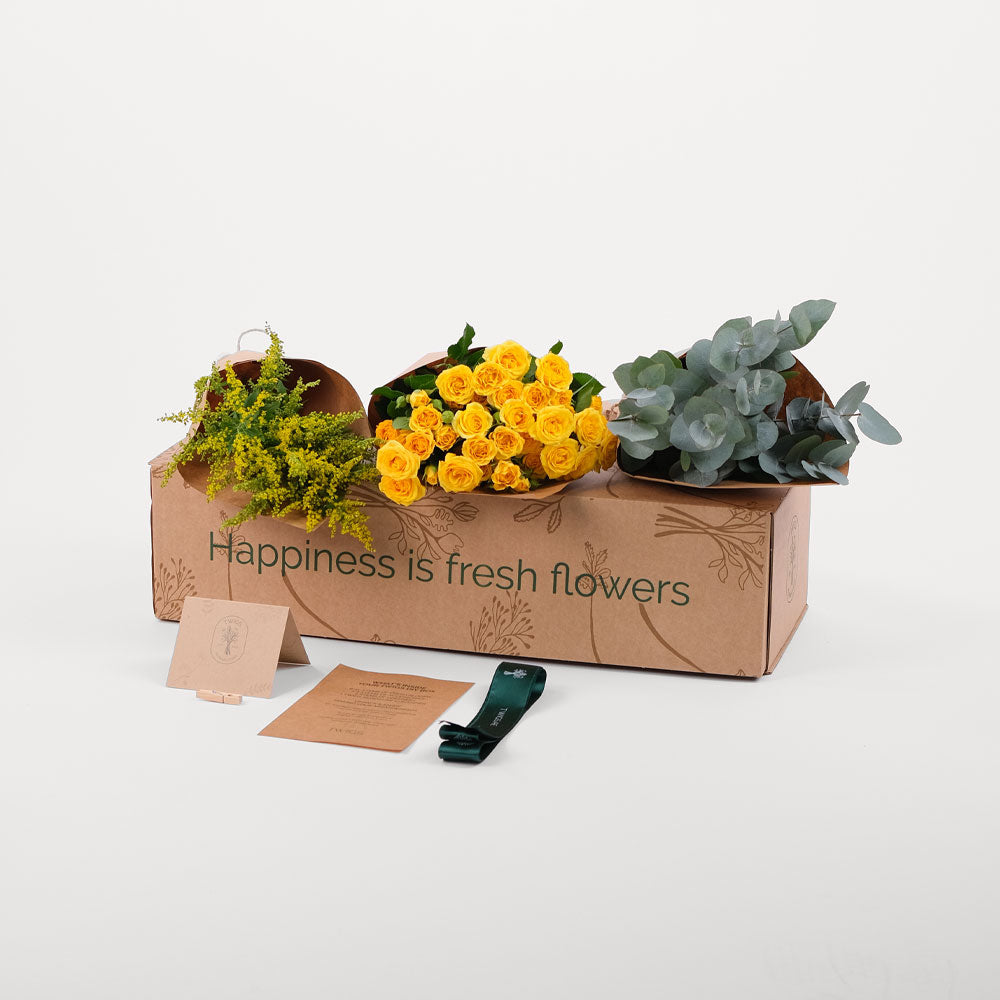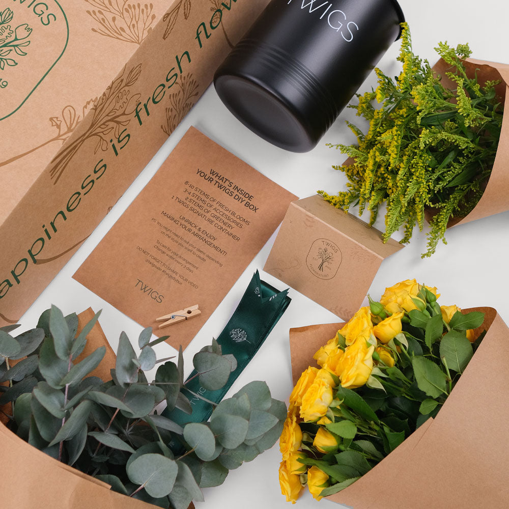 Get ready to get florist pants on with our Yellow Spray Roses DIY Box! Inside, you'll find a DIY BOX of vibrant yellow spray roses, lush greenery, and all the tools to craft your own floral masterpiece. Whether you're a DIY pro or just looking for a fun project, our DIY box is your invitation to a burst of creative floral fun. Order now and let the Yellow Spray Roses fuel your inner artist!